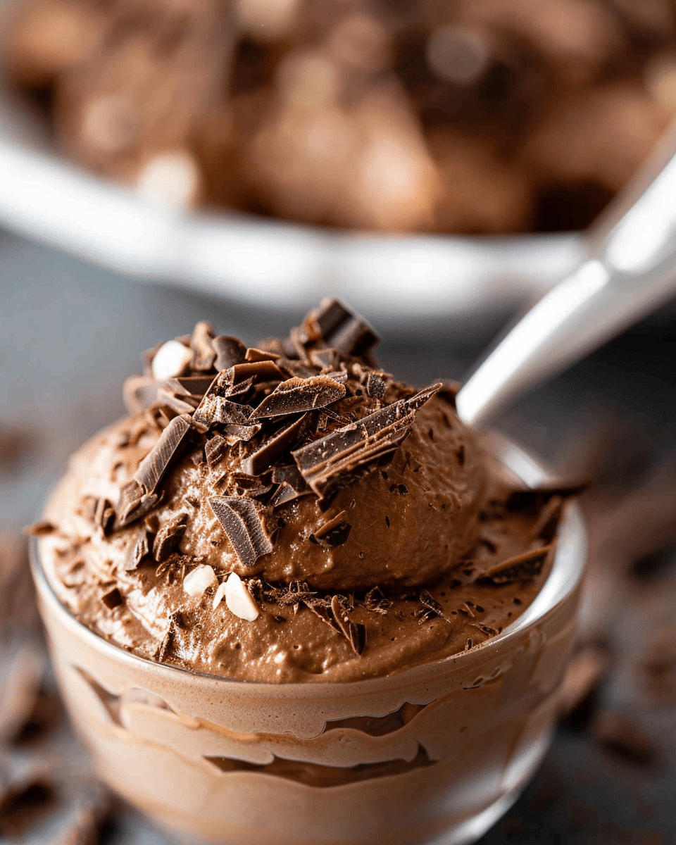 Re‑serving: There’s no reheating needed—serve chilled. If the mousse has firmed too much in the fridge, let it sit out for a few minutes before serving for easier spooning.