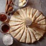 Place a small glass in the center as a guide. Cut the dough into 16 equal strips from the edge to the glass.