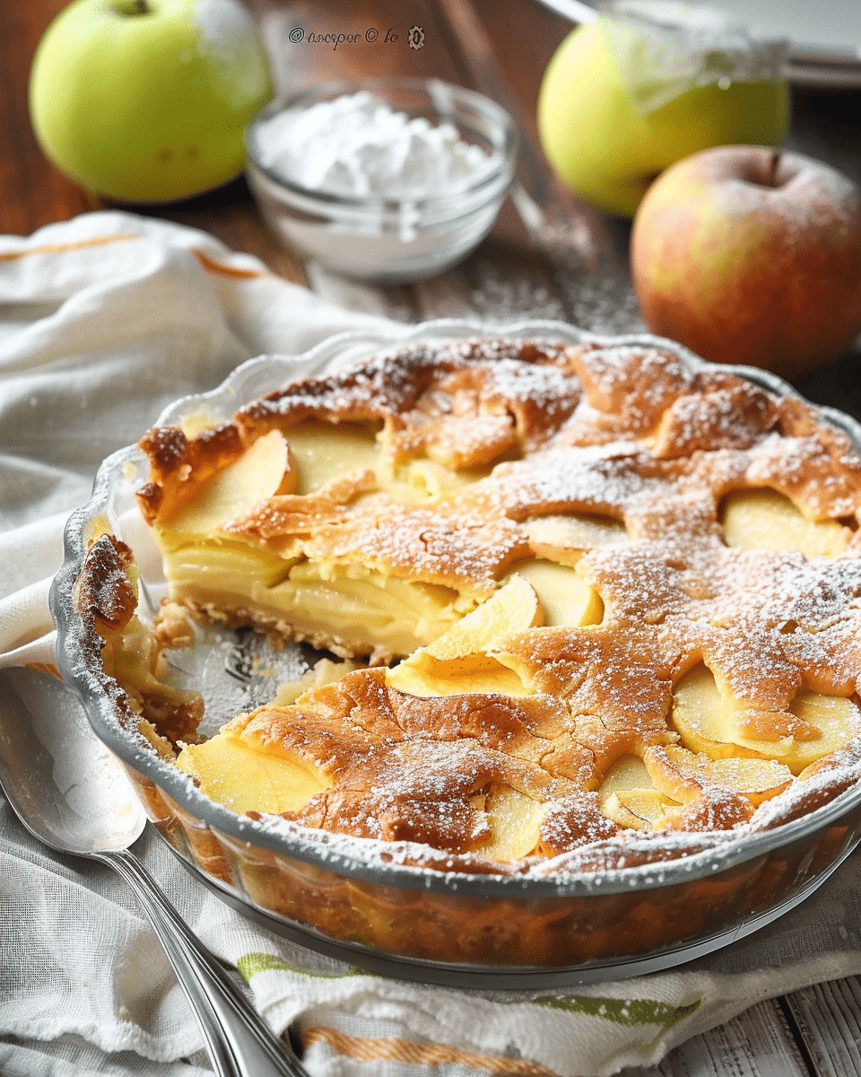 Use firm, slightly tart apples like Granny Smith, Honeycrisp, or Golden Delicious to hold their shape and balance the sweet custard.