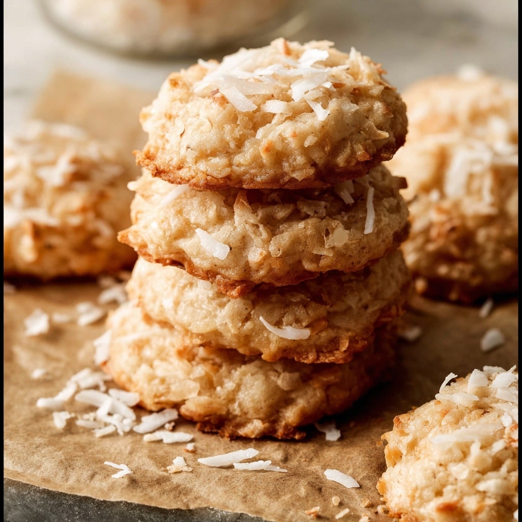 Use toasted coconut for a deeper, nuttier flavor.Chilling the dough helps the cookies hold their shape better.For added texture, mix in chocolate chips or chopped nuts.Store cookies with a slice of bread to keep them soft.Freeze baked cookies or cookie dough for longer storage.