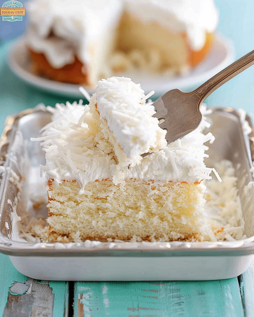 Use yellow cake mix for a richer flavor.Add a layer of crushed pineapple before the whipped topping for a tropical twist.Toast the shredded coconut for extra crunch and nuttiness.Swap whipped topping with homemade whipped cream for a fresher option.Add a dash of almond extract to the cake mix for extra flavor.