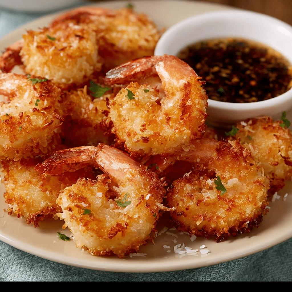 Coconut Shrimp are crispy, golden shrimp coated in a sweet and crunchy coconut-panko crust, then fried or baked to perfection. They make a fun and flavorful appetizer or main dish.
