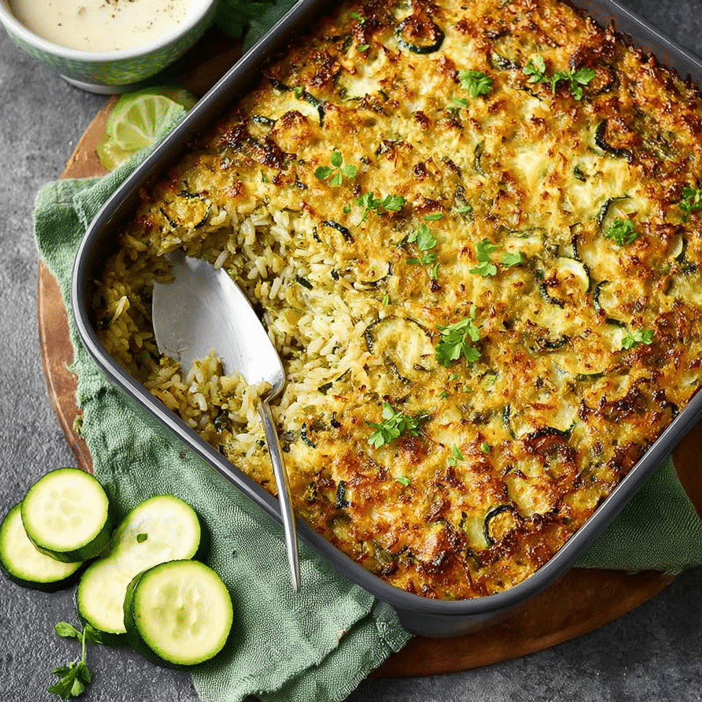 A comforting and easy courgette and rice bake recipe made with tender zucchini, fluffy rice, and a creamy egg and cheese mixture. This wholesome vegetarian dish is perfect as a hearty main or satisfying side for any meal.