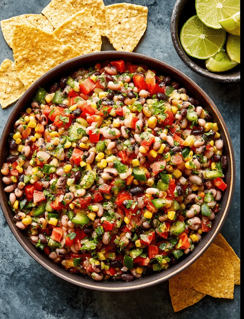 Cowboy Caviar is a vibrant and refreshing bean salad made with black beans, black-eyed peas, corn, and fresh vegetables tossed in a zesty lime dressing. This easy Cowboy Caviar recipe is perfect as a party dip, healthy side dish, or light meal, delivering bold flavors and satisfying crunch with no cooking required.