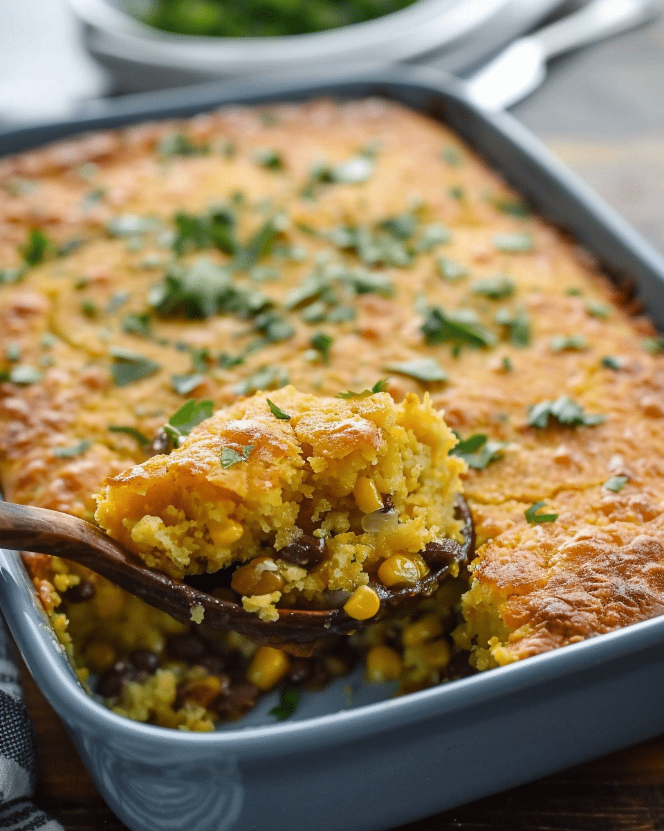 For a spicier casserole, add diced jalapeños or a spoonful of hot sauce to the filling.If you prefer a leaner version, swap ground turkey or chicken for the beef.To make it vegetarian, omit the ground beef and use extra beans and vegetables like bell peppers, mushrooms, or sweet potatoes.Feel free to experiment with different cornbread mixes or add your favorite seasonings to the batter.