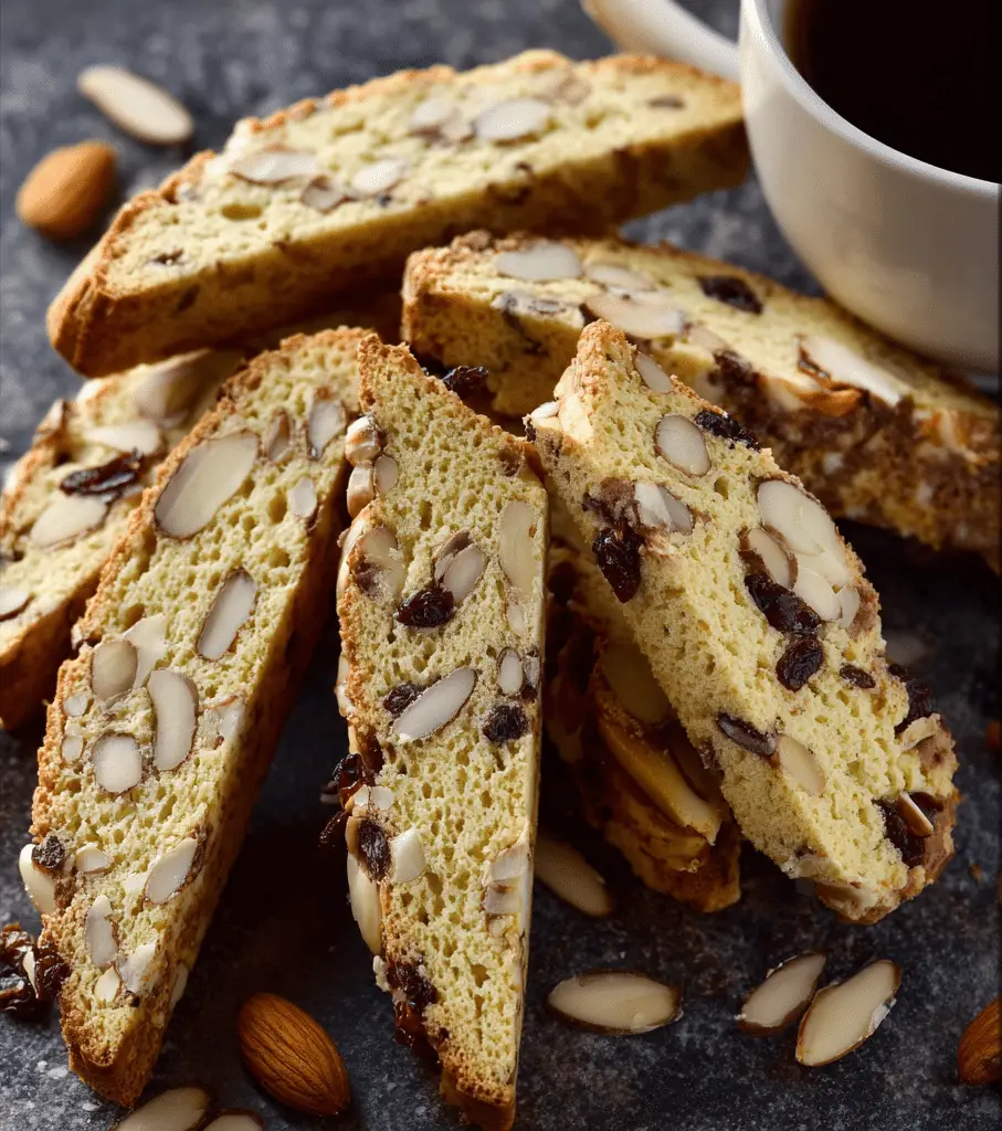 Let the biscotti logs cool slightly before slicing to prevent crumbling.A serrated knife works best for clean cuts.For deeper flavor, you can lightly toast the almonds before adding them to the dough.Biscotti will harden as they cool, giving them their signature crunchy texture.