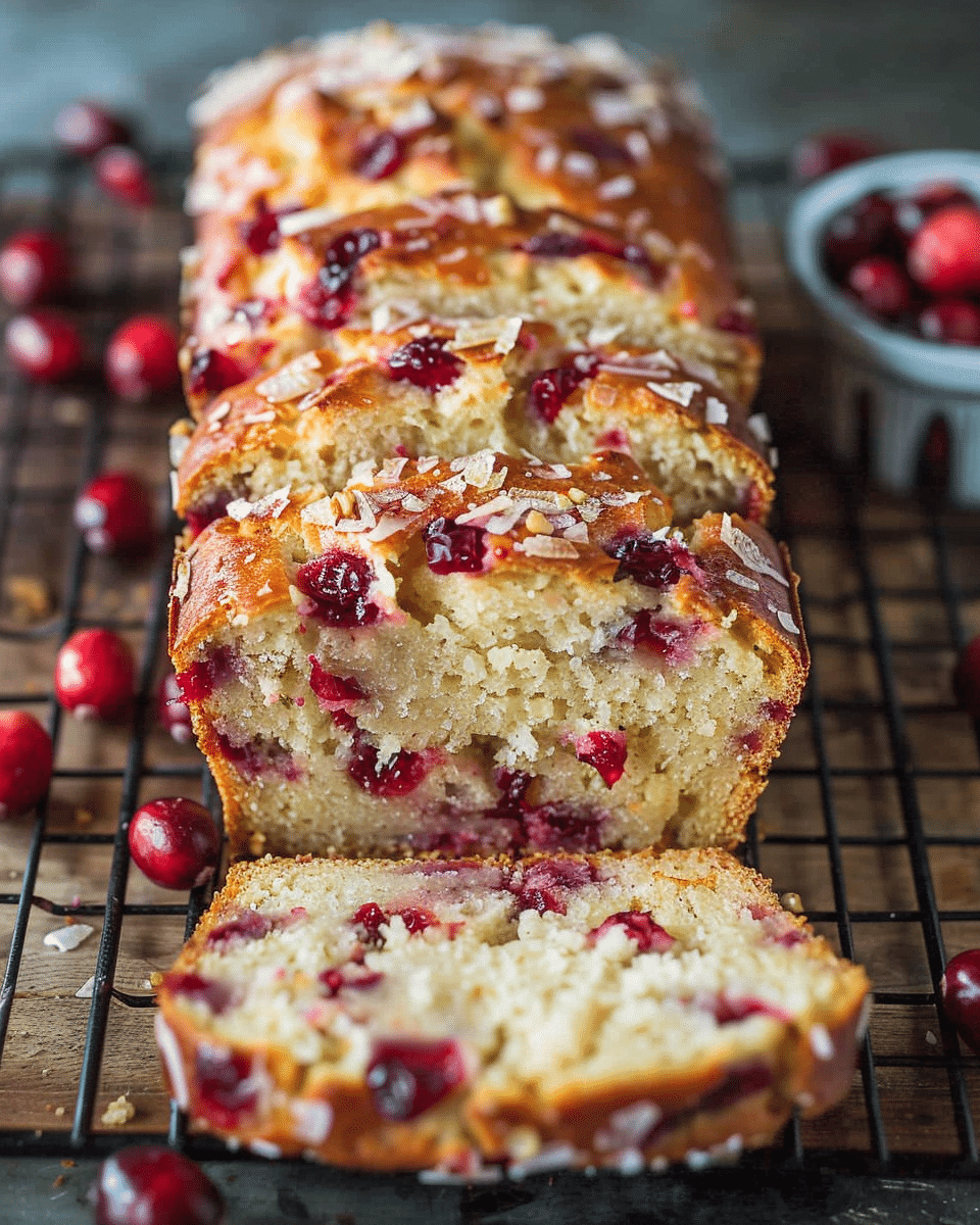 Cranberry Bread is a moist, tender quick bread filled with tart cranberries and a touch of citrus zest. It’s a delightful balance of sweet and tangy flavors, perfect for breakfast, brunch, or an afternoon snack.