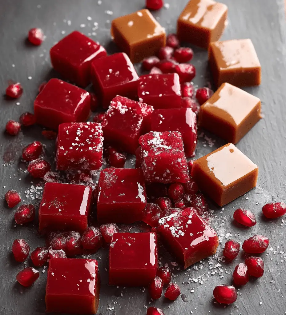 These caramels stand out for their unique flavor combination. The tangy brightness of cranberries and pomegranate juice cuts through the deep, buttery sweetness of caramel, creating a more complex and refreshing taste. They have a smooth, melt-in-your-mouth texture with just the right amount of chew. This recipe is also a great way to elevate traditional candy-making into something more sophisticated and memorable.
