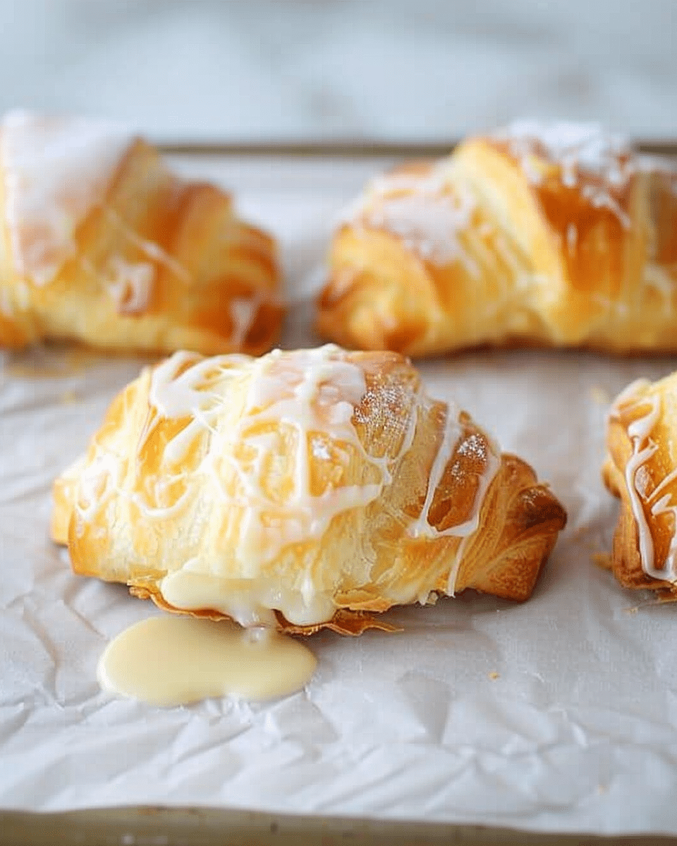 Drizzle the glaze: Once the danishes are baked and slightly cooled, drizzle the glaze over each pastry.