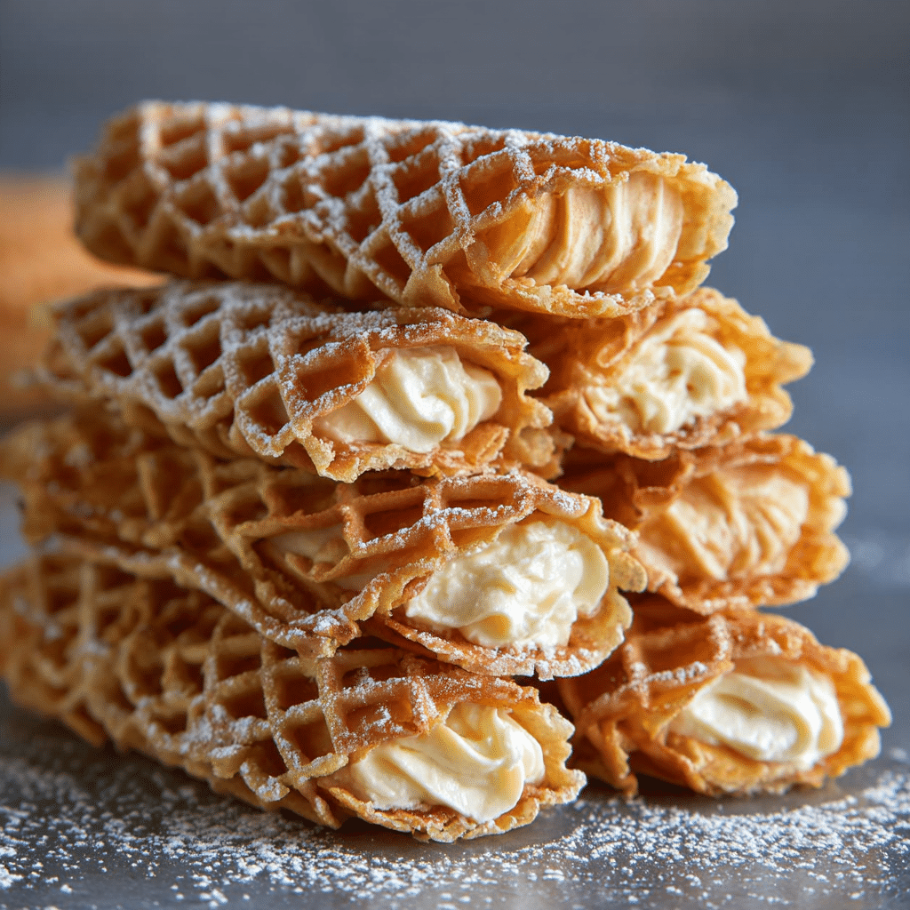 Cream Filled Pizzelles, or Trubochki, are elegant rolled wafer cookies that combine a crisp, delicate shell with a smooth and creamy filling. Their light texture and beautiful presentation make them perfect for holidays, celebrations, or special desserts. With their simple ingredients and versatile fillings, these pastries are a delightful addition to any homemade dessert collection
