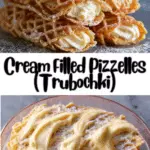 Cream Filled Pizzelles, also known as Trubochki, are delicate rolled wafer cookies with a crisp texture and a sweet whipped cream filling. Made using a pizzelle iron, these elegant pastries combine a light crunchy shell with a smooth creamy center, making them perfect for holidays, celebrations, or special dessert platters.