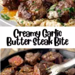 Return the steak bites to the pan and toss to coat in the creamy garlic butter sauce. Heat through for 1–2 minutes.