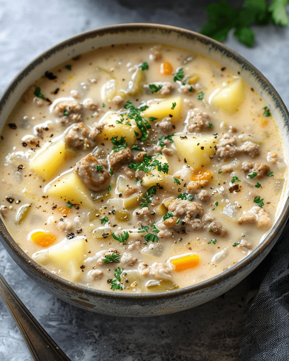 This soup is budget-friendly, filling, and packed with flavor. It comes together quickly with simple pantry ingredients and makes enough to feed the whole family. The creamy base, combined with savory ground beef and tender potatoes, creates a satisfying texture and taste that feels like comfort in a bowl. It’s also versatile, allowing you to add vegetables or cheese for extra richness.