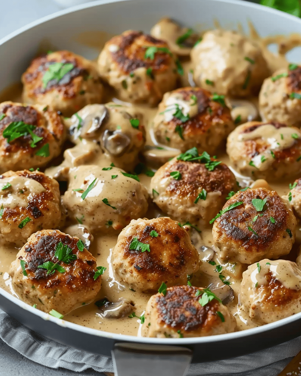 Creamy Mushroom Chicken Meatballs are a rich and comforting dish that will quickly become a favorite in your recipe rotation. The tender chicken meatballs, savory mushroom sauce, and creamy texture make for a satisfying meal that’s perfect for any occasion. Whether you serve it over pasta, rice, or mashed potatoes, this dish is sure to impress with its deep flavors and comforting texture. Simple to prepare but full of flavor, Creamy Mushroom Chicken Meatballs are an ideal choice for a hearty and delicious dinner!