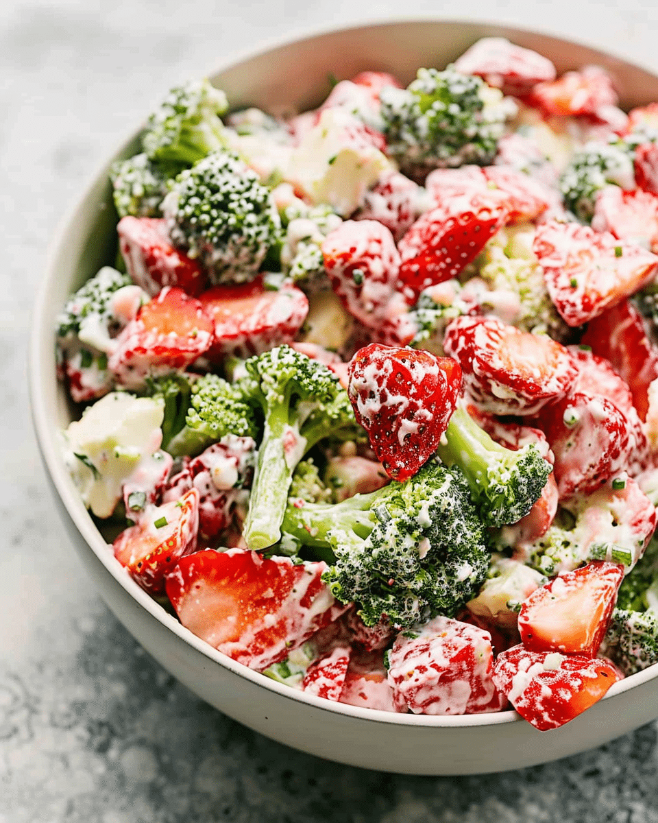 Creamy Strawberry Broccoli Salad is a delightful blend of textures and flavors that’s perfect for any occasion. With its fresh vegetables, sweet strawberries, and tangy dressing, this salad is both satisfying and refreshing. It’s quick to prepare, easy to customize, and sure to be a hit at your next gathering or as a tasty side dish. Whether you’re looking for a healthy snack, a light lunch, or a flavorful addition to a barbecue, this salad is a fantastic choice!