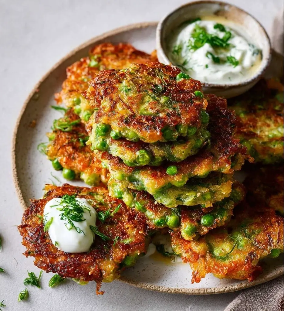 Crispy Pea Fritters are golden, pan-fried bites made with green peas, fresh herbs, and savory seasonings. Crunchy on the outside and soft inside, they’re a quick and easy vegetarian option perfect as a snack, appetizer, or light main.