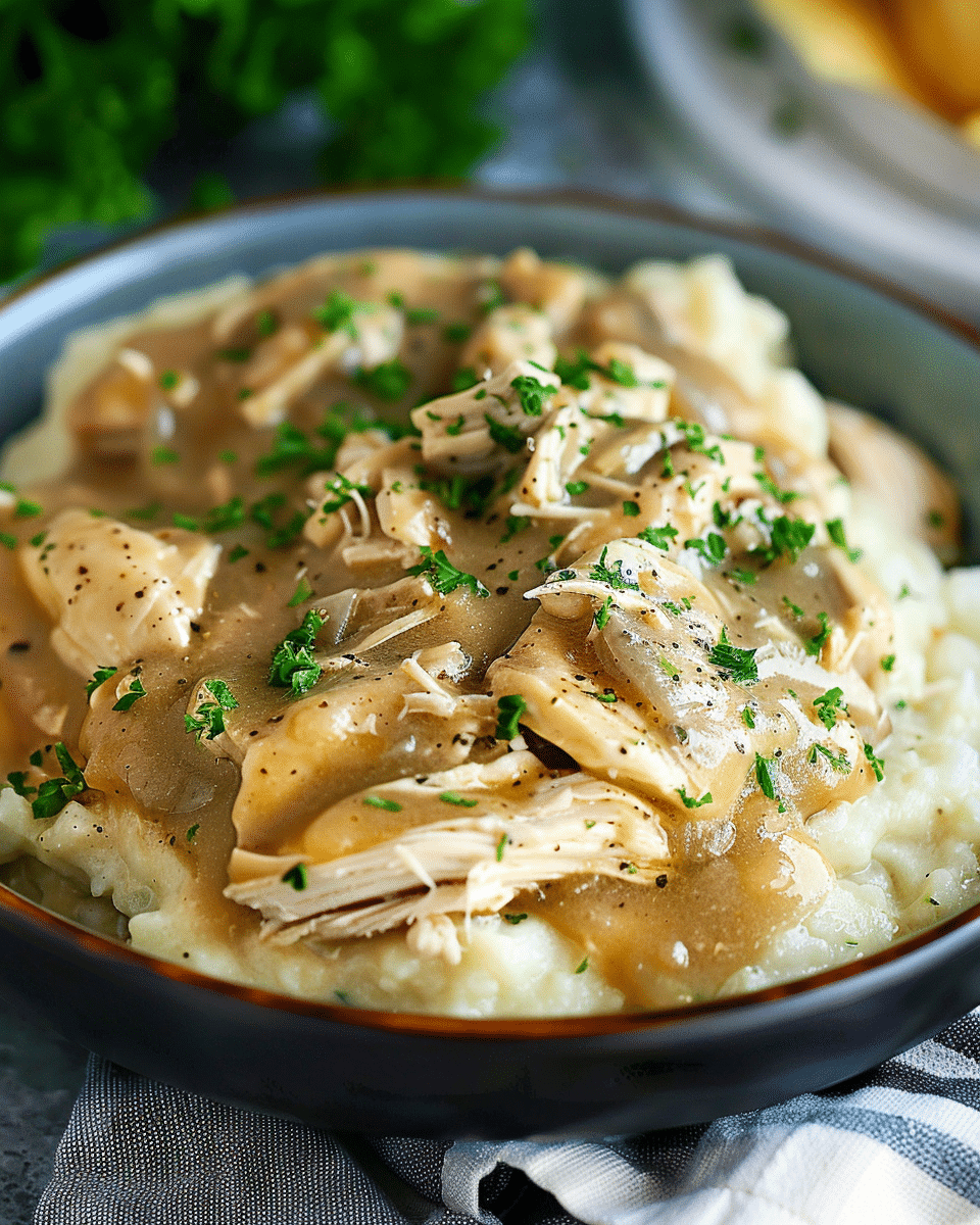 Use chicken thighs for a juicier result; breasts for a leaner version.For a homemade alternative, substitute gravy packets and soup with broth, cream, and a cornstarch slurry.Add veggies like carrots or peas during the last 1–2 hours of cooking.Mix in ranch seasoning for a flavor twist.To thicken gravy, stir in a cornstarch slurry 30 minutes before serving.