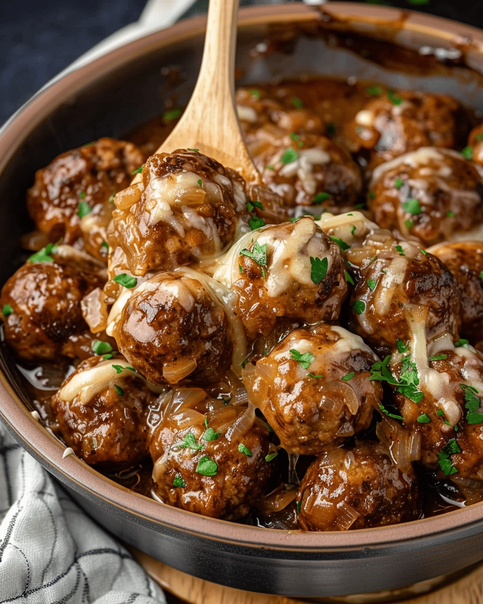 Crockpot French Onion Meatballs are an incredibly flavorful, comforting dish that’s perfect for any occasion. The slow-cooked meatballs soak up the savory, onion-infused broth, creating a tender, juicy bite with every mouthful. Whether you serve them as an appetizer or a main course, this easy-to-make dish will quickly become a family favorite. Plus, the convenience of using the crockpot makes it a hassle-free option for busy days. Enjoy this delicious, melt-in-your-mouth meal that’s packed with flavor!
