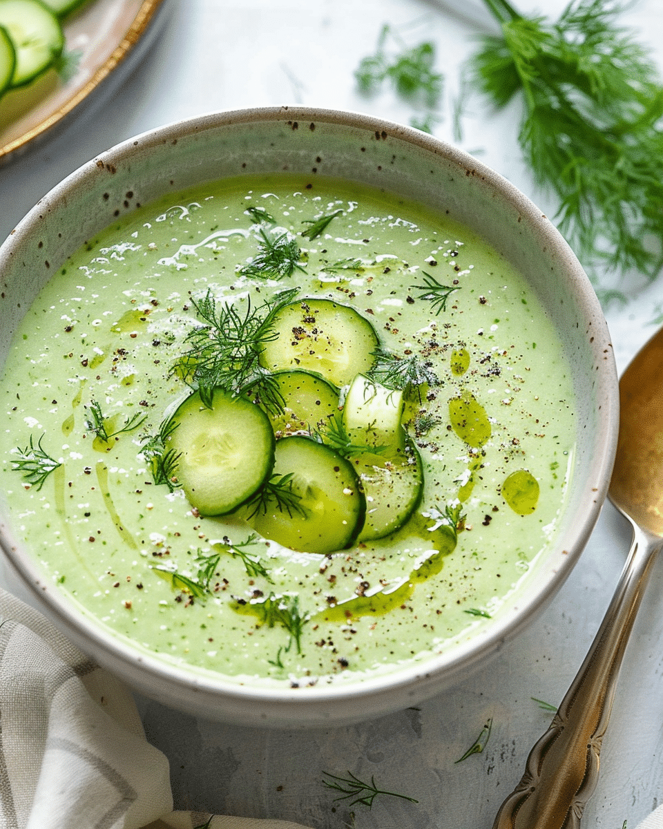 Cucumber soup is incredibly easy to make, requiring minimal prep and no cooking if served cold. It’s naturally low in calories, hydrating, and full of fresh flavor. Whether blended with yogurt for a creamy texture or kept dairy-free and vegan, it’s a refreshing and nourishing choice. Plus, it can be customized with herbs, spices, or toppings to suit any taste.
