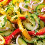 Cucumber Sweet Pepper Salad is a quick, vibrant, and refreshing dish that highlights the natural crunch and sweetness of fresh vegetables. With its light dressing and simple preparation, it’s a versatile side that pairs beautifully with many meals. This easy salad is perfect for warm days or anytime you want a crisp and healthy addition to your table.