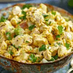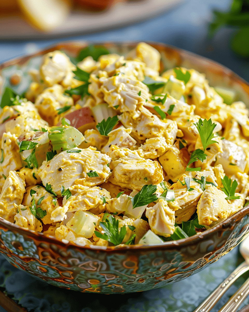 This Curried Chicken Salad is a vibrant twist on the classic, featuring tender chicken, warm curry spices, crisp vegetables, and a creamy dressing. Perfect for sandwiches, wraps, or served over greens for a light, satisfying meal.