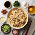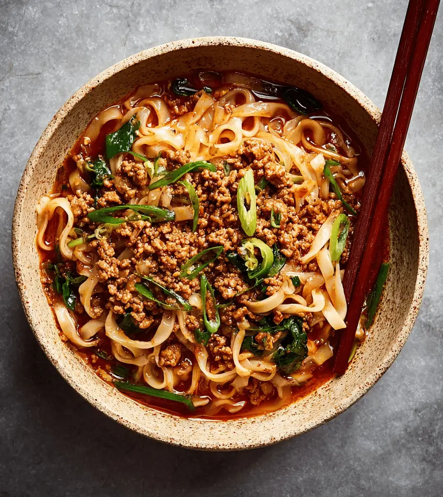 This Dan Dan Noodles recipe features tender wheat noodles tossed in a rich, savory, and slightly spicy sesame sauce with seasoned ground chicken. Inspired by classic Sichuan flavors, these homemade Dan Dan noodles deliver bold, restaurant-quality taste in just 30 minutes. Perfect for weeknight dinners or meal prep, this dish balances nuttiness, heat, and umami in every bite.
