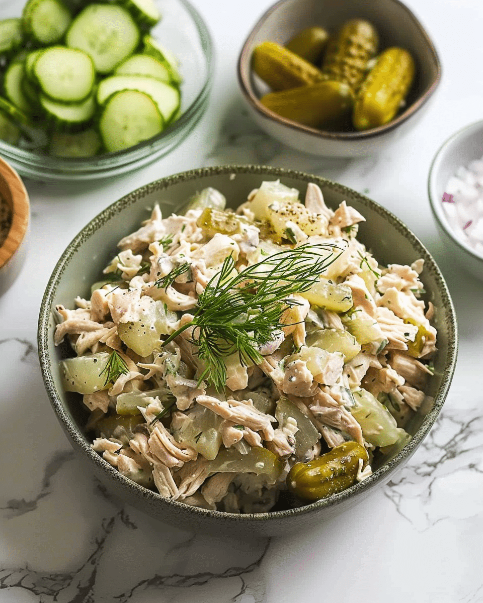 This chicken salad is a must-try for dill pickle enthusiasts. It’s creamy, refreshing, and comes together quickly with simple ingredients. The combination of tender chicken, crunchy pickles, and a flavorful dressing makes it ideal for sandwiches, wraps, or low-carb lettuce cups. Plus, it’s gluten-free, keto-friendly, and perfect for make-ahead meals.