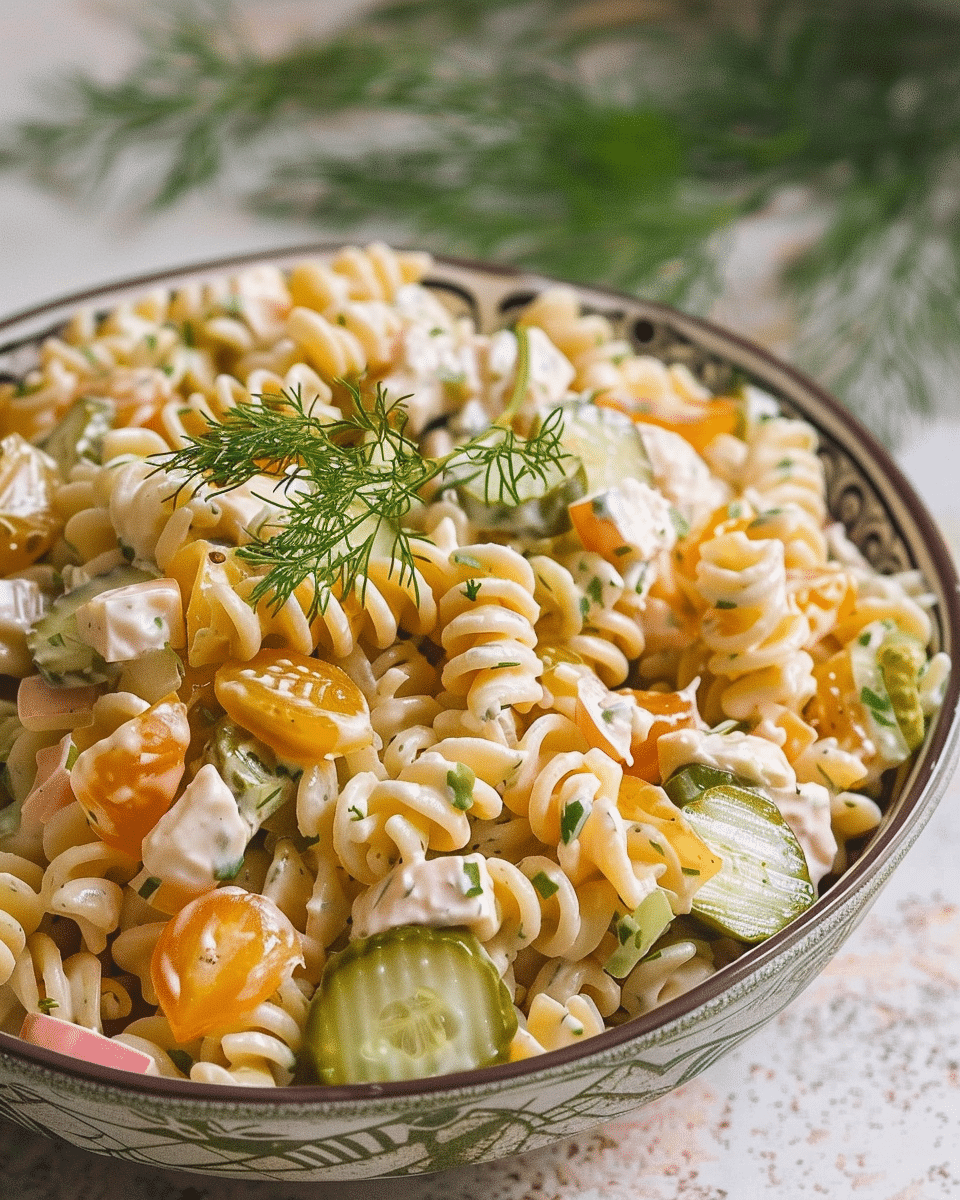 Dill Pickle Pasta Salad is a tangy and refreshing twist on the classic pasta salad, featuring the bold flavor of dill pickles mixed with creamy dressing and crunchy vegetables. Perfect for summer picnics, barbecues, or casual gatherings, this easy-to-make salad is a crowd-pleaser that pickle and pasta salad lovers will adore!