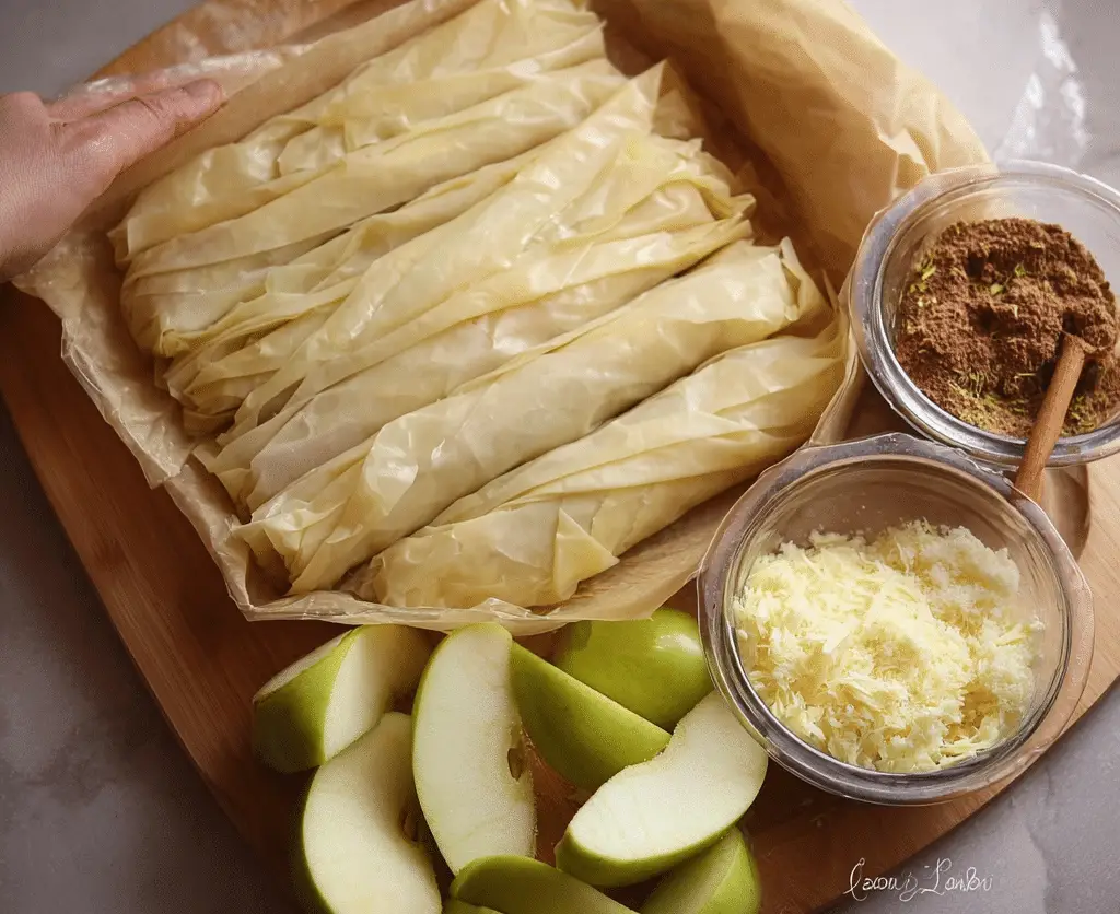 Use firm apples that hold their shape during baking.Peeling the apples is optional, but peeled apples give a softer texture.Add a sprinkle of cinnamon or a pinch of nutmeg for extra warmth.You can substitute apples with pears, peaches, or mixed berries.Store leftovers covered in the refrigerator for up to 3 days.Reheat in the oven for the best texture, as the fillo stays crispier than in the microwave.