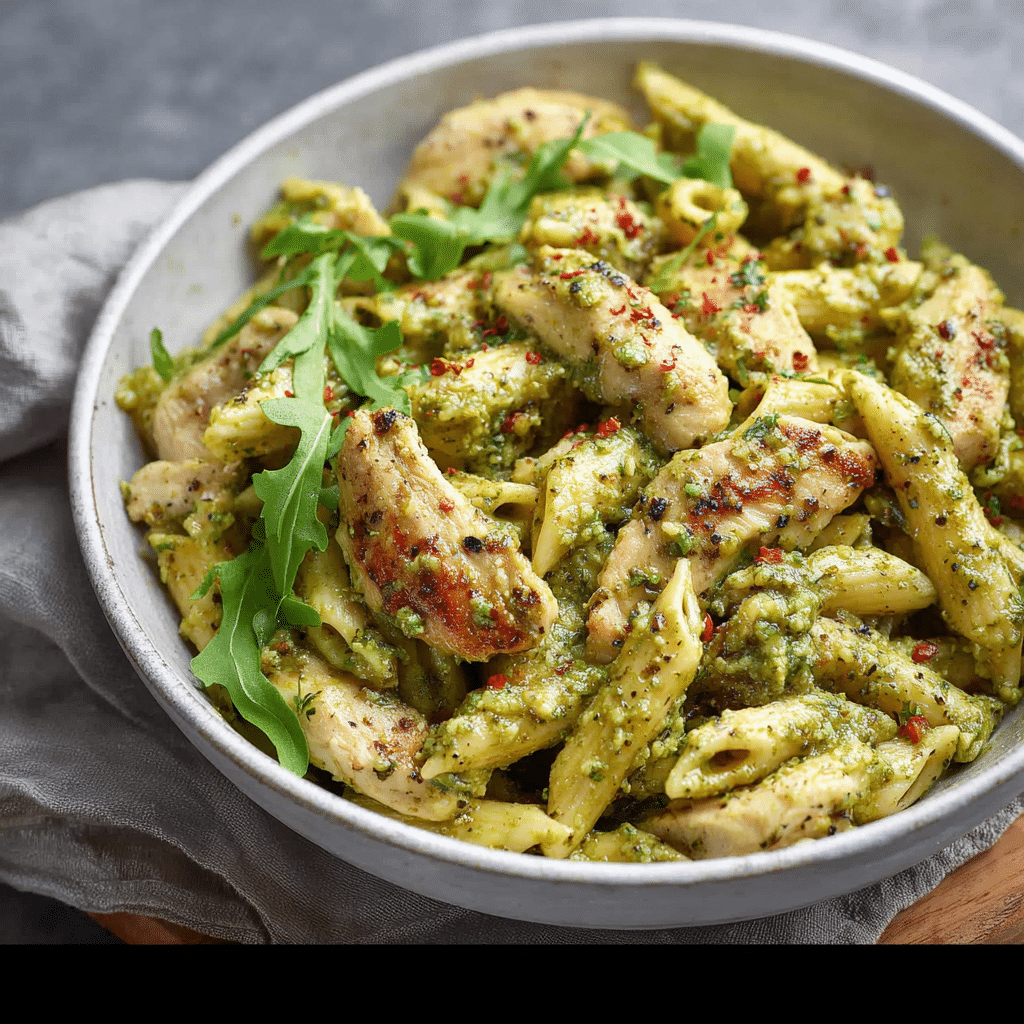This recipe is simple, comforting, and packed with flavor. The pesto adds a bright, herby richness, while the chicken makes it hearty and filling. It comes together fast, uses everyday ingredients, and can be easily customized to your taste.