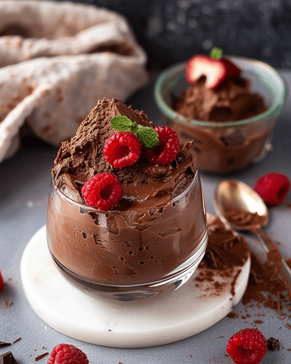 Egg‑free version: Use just whipped cream and melted chocolate (skip eggs entirely) for a simpler mousse. Some recipes even use only cream, cocoa powder and sugar.