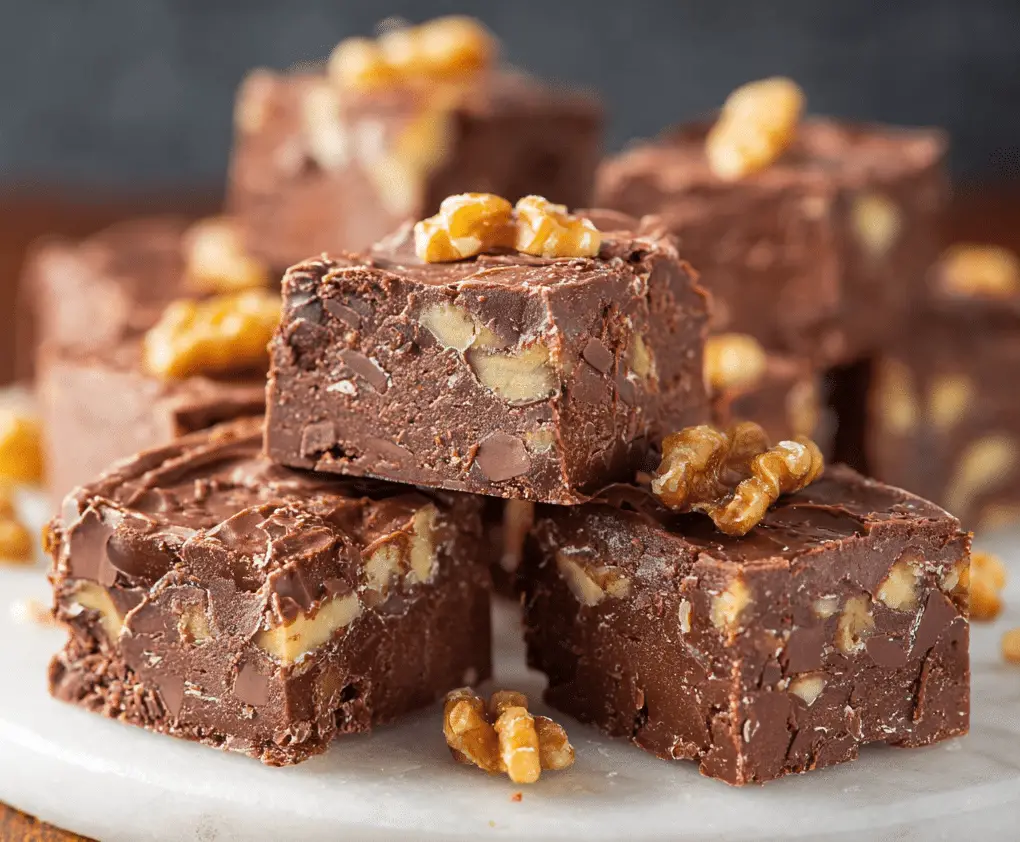 This Easy Chocolate Walnut Fudge is a rich, creamy dessert made with smooth chocolate and crunchy walnuts for the perfect balance of flavor and texture. With only a few simple ingredients and minimal prep time, this homemade fudge recipe is perfect for holidays, parties, edible gifts, or anytime you crave a quick chocolate treat.