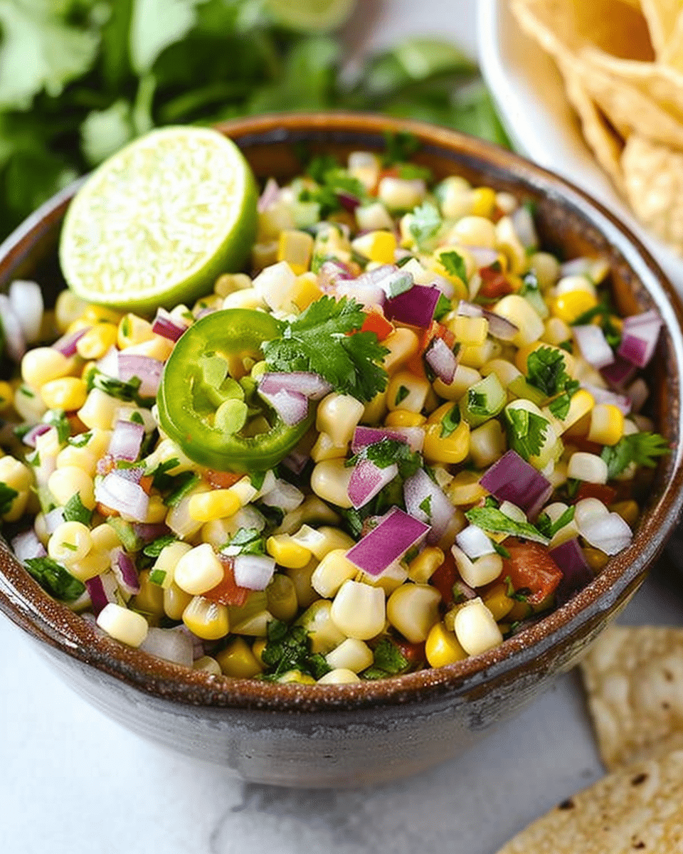 Corn salsa is a fresh, vibrant dip or topping made with sweet corn, peppers, onion, cilantro, and lime juice. It’s tangy, slightly spicy, and versatile enough for tacos, chips, or grilled dishes.