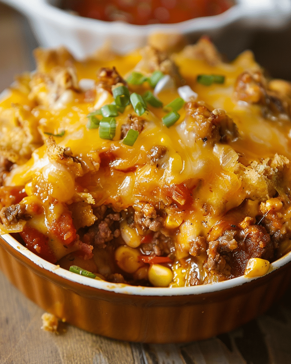 A hearty, family-friendly casserole made with ground beef, creamy soup, corn, cheese, and crispy tater tots. Easy to prepare, budget-friendly, and perfect for busy weeknights.