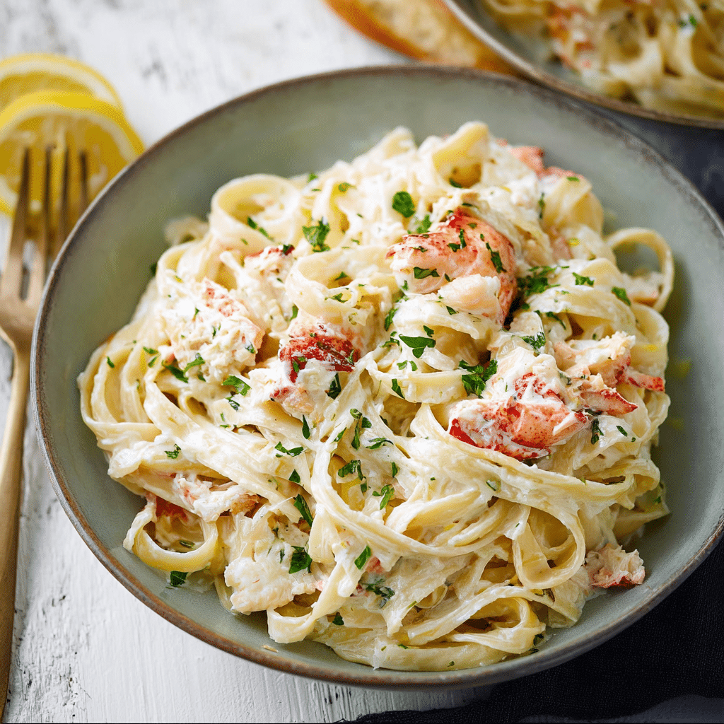 • Rich, creamy Alfredo sauce infused with aromatic garlic. • Tender lobster adds a deliciously sweet seafood flavor. • Perfect for special occasions, date nights, or celebrations. • Surprisingly simple to prepare despite its elegant appearance. • Ready in under an hour. • Restaurant-style dish made easily in your own kitchen. • Comforting pasta with a gourmet twist.