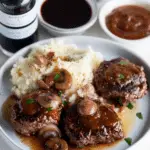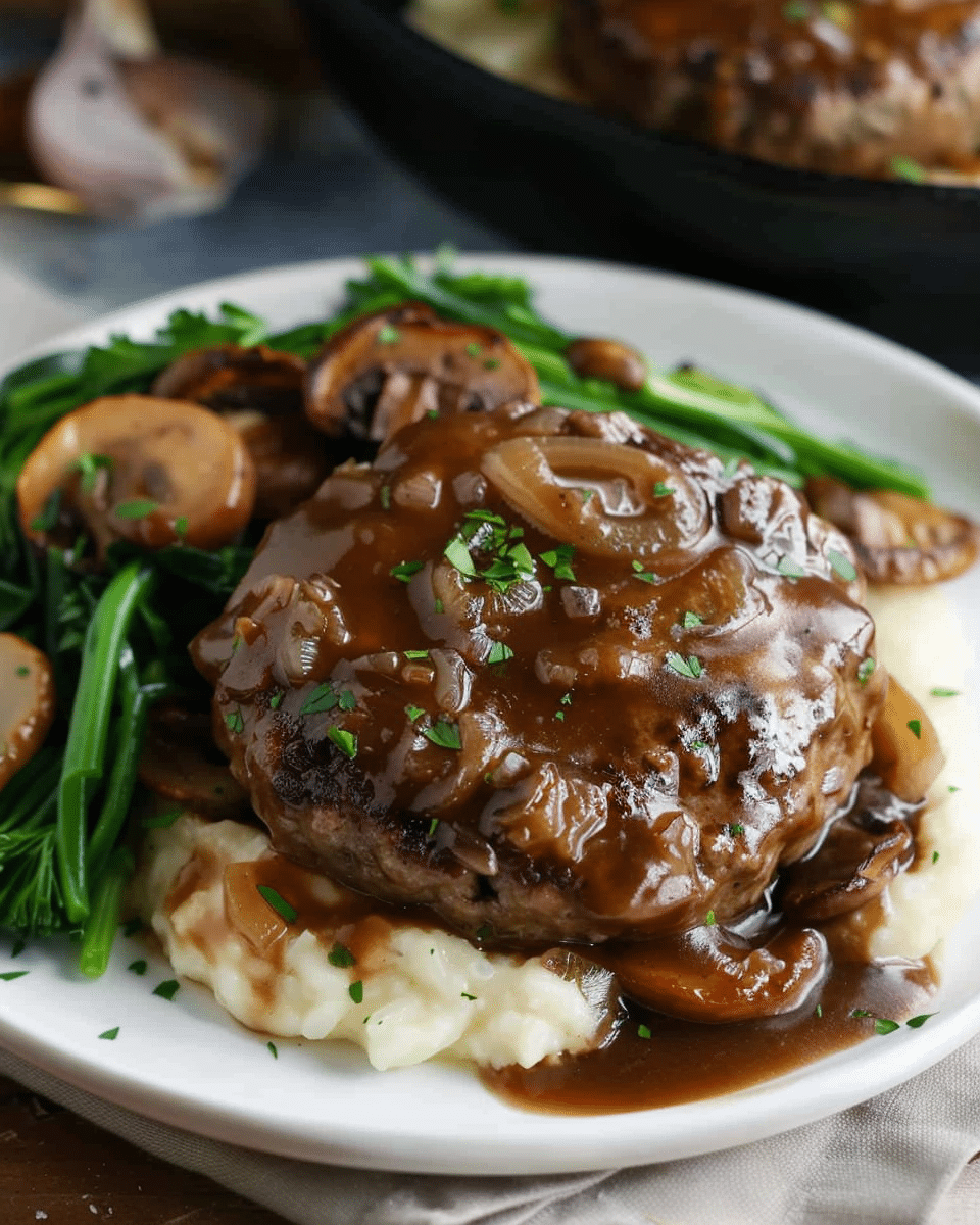 Easy Salisbury Steak is a classic comfort food dish featuring seasoned ground beef patties simmered in a rich mushroom and onion gravy. It’s a hearty and flavorful meal that’s perfect for weeknights or cozy dinners.