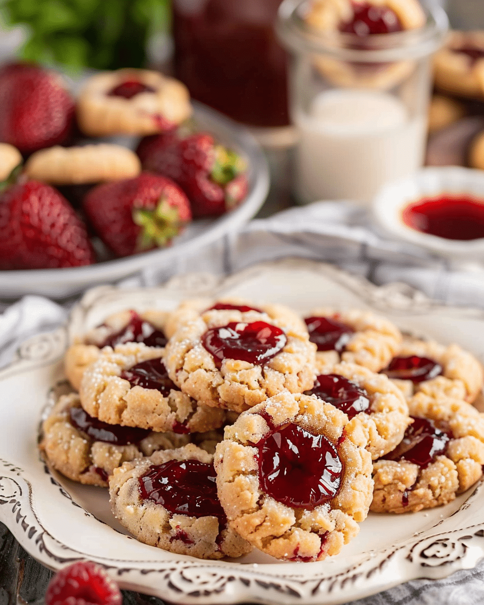 Use thick jam to prevent leaking during baking.If the dough is too soft, chill it for 20–30 minutes before baking.Make the indent before baking and gently press again afterward if needed.For a nutty version, roll dough balls in chopped nuts before baking.These cookies freeze well—store in layers separated by parchment paper.