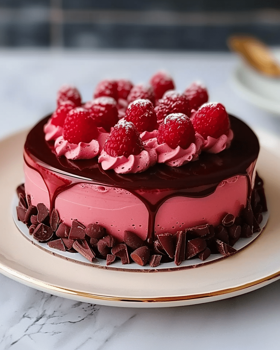 For a vegetarian version, use agar-agar instead of gelatin.You can swap raspberry jelly with other fruits like mango or strawberry for a different flavor.If using a different type of chocolate, the taste of the mousse and glaze will change—dark chocolate is recommended for a balanced contrast with the raspberry jelly.Make sure to chill the mousse and jelly to ensure a firm texture when assembling.