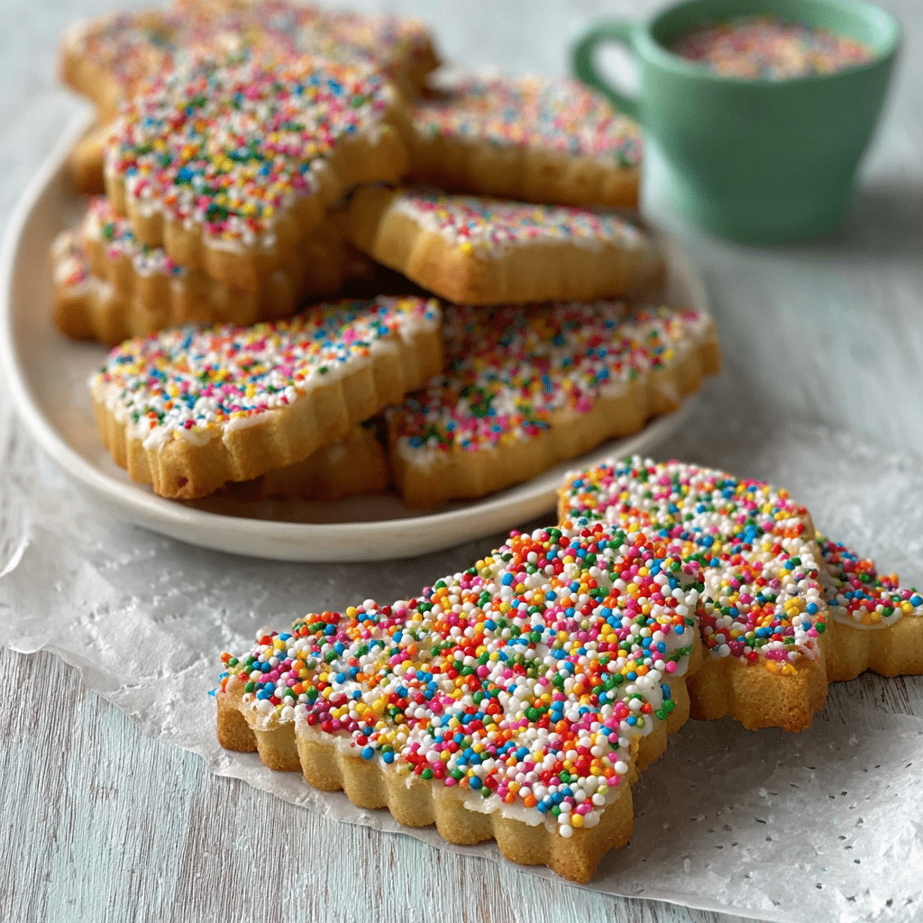 These fairy bread cookies are soft, buttery sugar cookies topped with sweet icing and colorful sprinkles. Inspired by the classic party treat, they’re fun, easy to make, and perfect for birthdays, celebrations, or baking with kids.