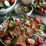 Fattoush is a refreshing Middle Eastern salad made with crispy toasted pita, fresh vegetables, herbs, and a zesty lemon-sumac dressing. It’s tangy, crunchy, and perfect as a side or light main dish.