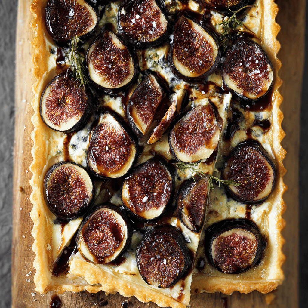 • Perfect balance of sweet figs and tangy blue cheese. • Elegant dish that looks impressive but is simple to prepare. • Flaky pastry crust provides a delicious texture contrast. • Ideal for appetizers, brunch spreads, or light meals. • Great for entertaining guests or special occasions. • Can be served warm or at room temperature. • Easy to customize with herbs, nuts, or additional cheeses.