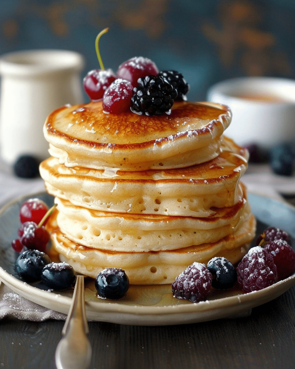 These Fluffy Pancakes are light, airy, and tender—just the way pancakes should be. The secret to their fluffiness is the perfect balance of wet and dry ingredients, along with a bit of baking powder that helps them rise while cooking. They’re easy to make, quick to cook, and the perfect base for any toppings you like. Whether you prefer your pancakes with butter and syrup or topped with berries and whipped cream, these pancakes are sure to become a breakfast favorite!
