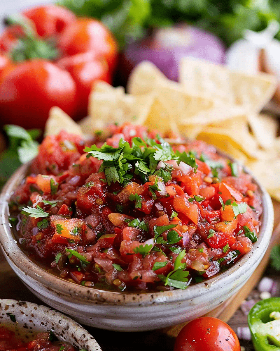 Fresh homemade salsa is a vibrant, zesty dip made with ripe tomatoes, onions, jalapeños, cilantro, lime juice, and spices. It’s perfect for chips, tacos, and more.