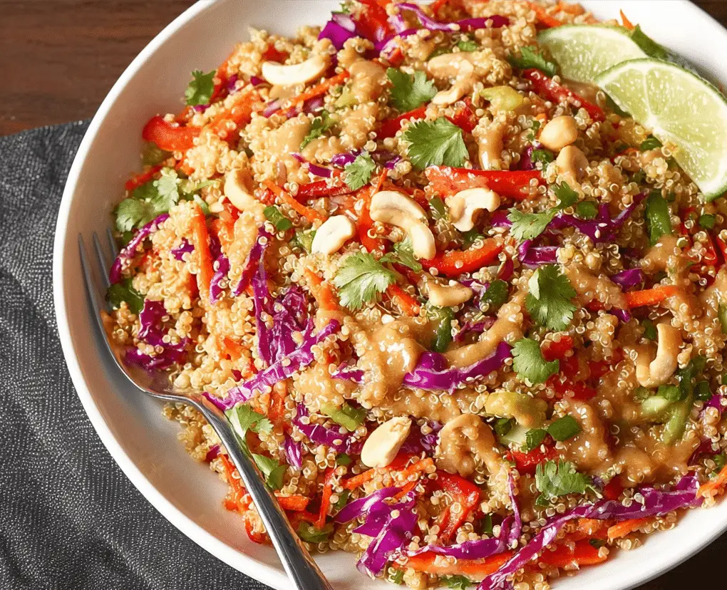 This Fresh Thai Quinoa Salad with Peanut Sauce is a delicious, wholesome dish bursting with flavor and texture. With its creamy dressing and fresh ingredients, it’s a perfect go-to recipe for a healthy and satisfying meal