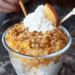 Frozen Peach Crisp is a cozy, fruit-forward dessert made with frozen peaches and topped with a buttery oat crumble. It’s easy to prepare, available year-round, and perfect for serving warm with ice cream or whipped cream.
