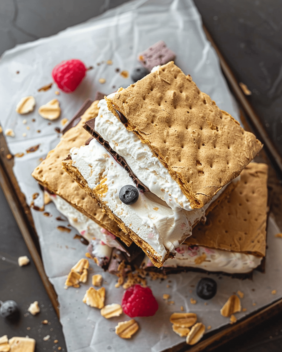Use parchment paper between layers when storing to prevent sticking.Adjust sweetness with flavored yogurt or sugar-free chocolate if needed.Fluff spreads easier than marshmallows and creates a more even layer.For added indulgence, dip the entire sandwich in melted chocolate before freezing.