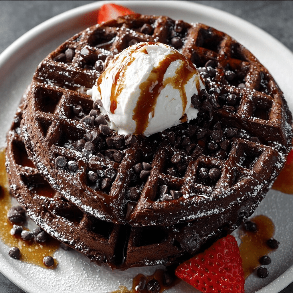 If you love brownies, this recipe takes them to the next level. The waffles have a slightly crisp exterior while staying soft and fudgy inside. They’re quick to make, perfect for special breakfasts or desserts, and pair beautifully with toppings like ice cream, whipped cream, or fresh fruit.