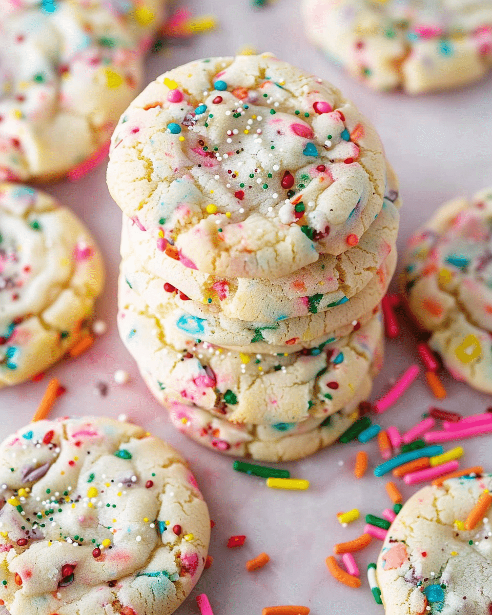 These cookies are a celebration in every bite—cheerful, sweet, and incredibly easy to make. With the convenience of cake mix, there’s no need to fuss with measuring flour, sugar, or leavening agents. The result is soft, tender cookies with that classic Funfetti flavor and a festive look that’s perfect for parties, holidays, or anytime you need a quick and happy dessert.