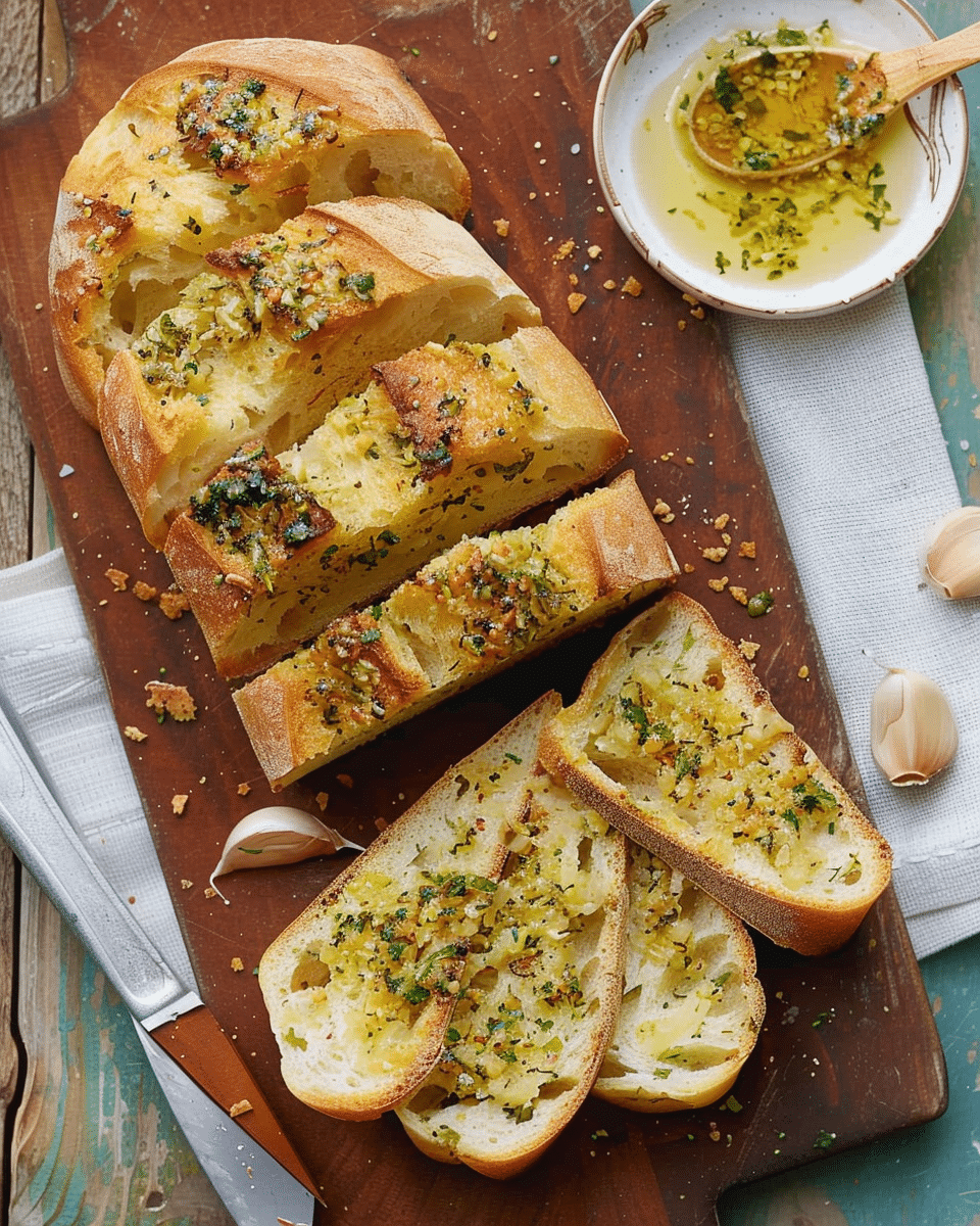 Garlic Bread with Olive Oil: Replace butter with extra virgin olive oil for a different flavor and lighter texture.