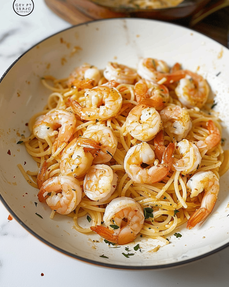 Use white wine to deglaze the pan after sautéing garlic for extra flavor.For a creamy version, stir in a splash of heavy cream.Don’t overcook shrimp; they only need 1–2 minutes per side.Substitute pasta with zucchini noodles for a low-carb option.Reheat leftovers gently in a skillet with a splash of broth or water to loosen the sauce.